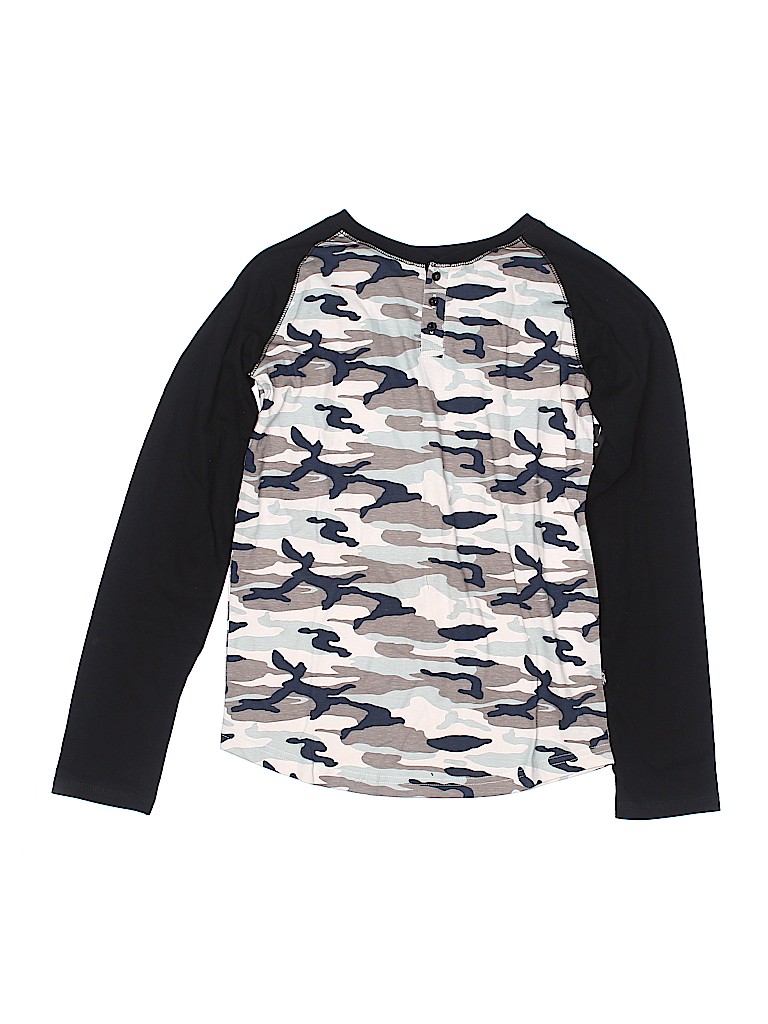 - Long sleeve, henley, camo print, tan