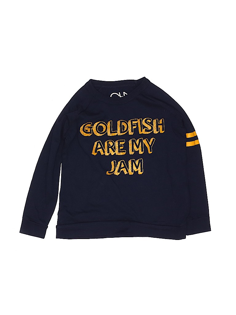 - Long sleeve, crew neckline, graphic print, blue