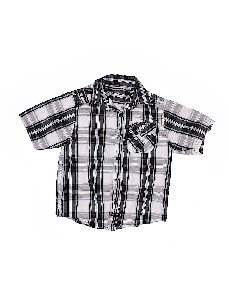 - Short sleeve, plaid print, gray