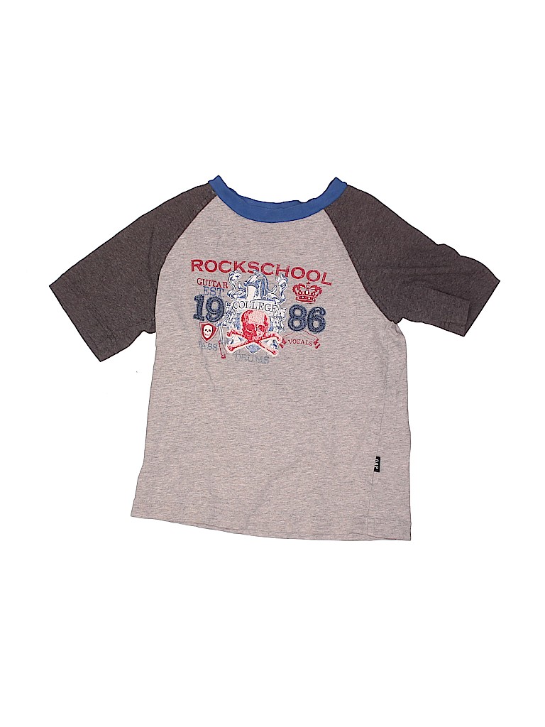 - Short sleeve, crew neckline, graphic print, gray