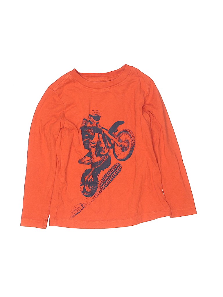 - Long sleeves, crew neckline, graphic print, orange
