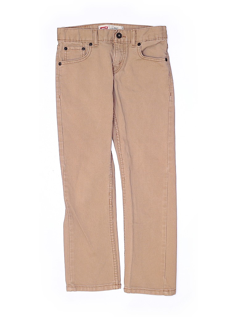 - Solid, tan, colored denim, adjustable waist
