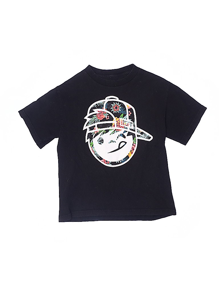 - Short sleeve, crew neckline, graphic print, black