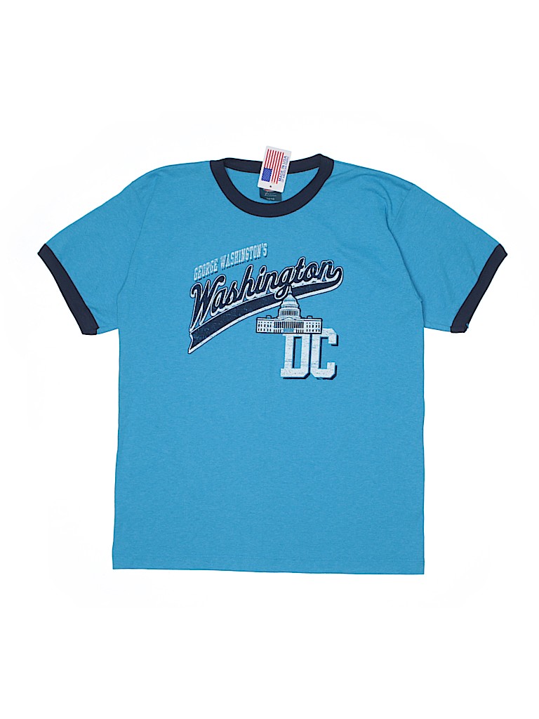 - Short sleeve, crew neckline, graphic print, blue