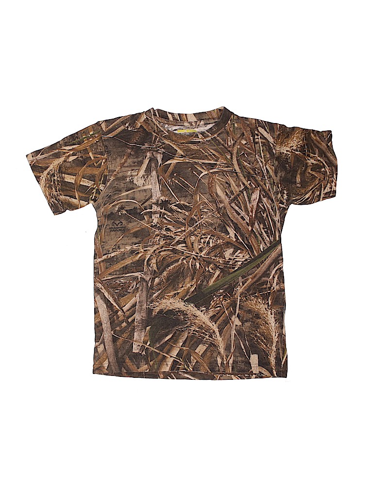 - Short sleeve, crew neckline, camo print, brown