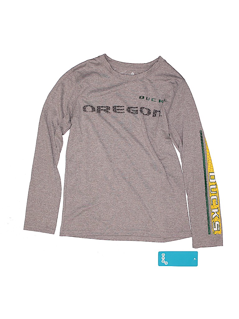 - Long sleeves, crew neckline, graphic print, gray