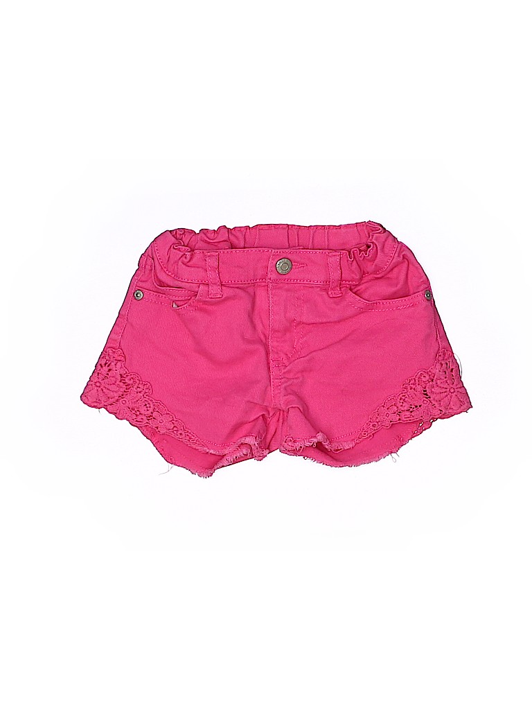 - Solid, embroidered detail, frayed edges, pink, adjustable waist