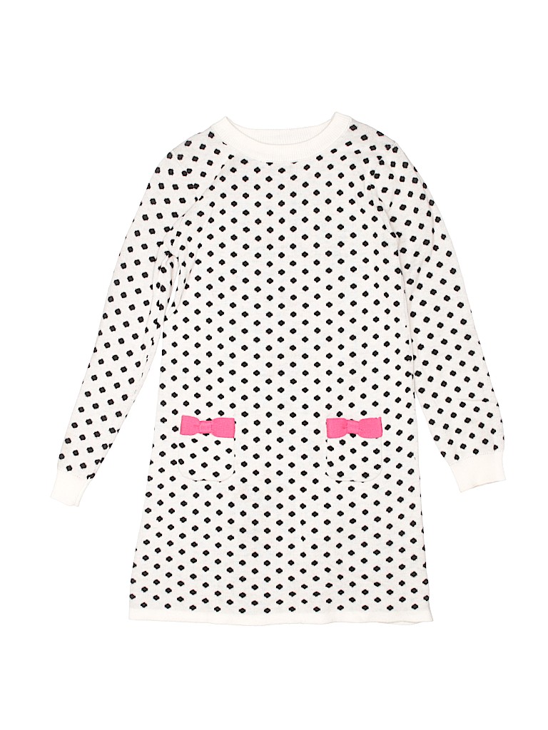 - Crew neckline, a-line silhouette, polka dot print, white