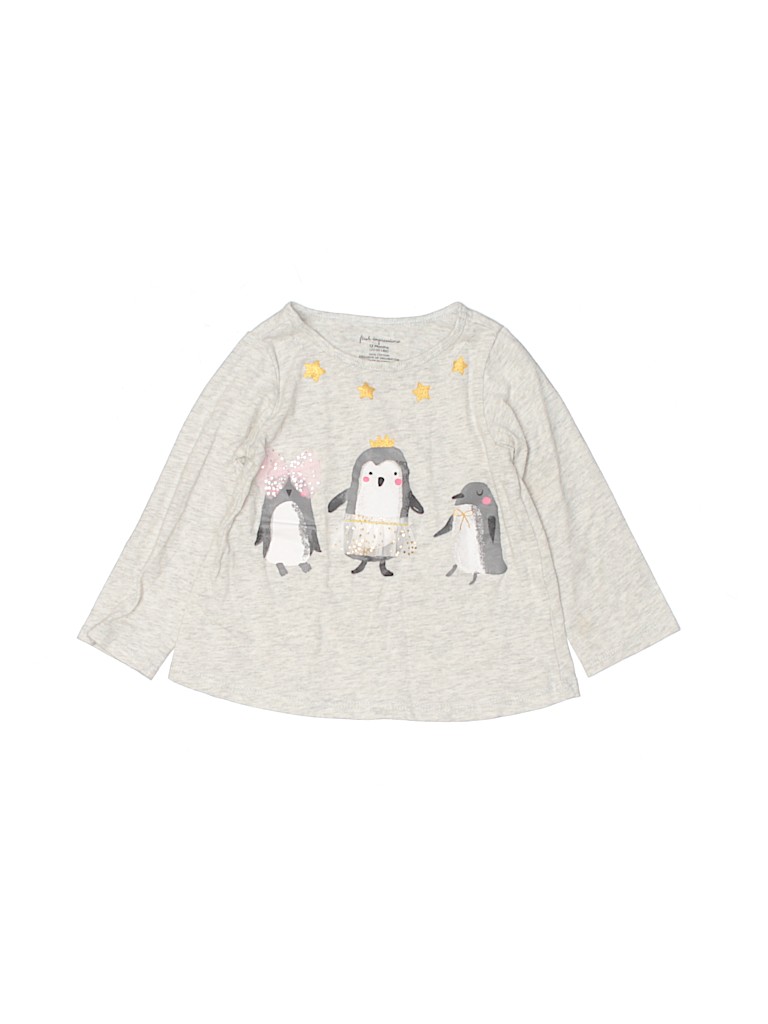 - Long sleeve, crew neckline, graphic print, gray