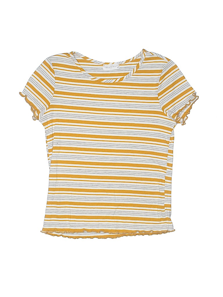 - Short sleeve, crew neckline, striped print, orange