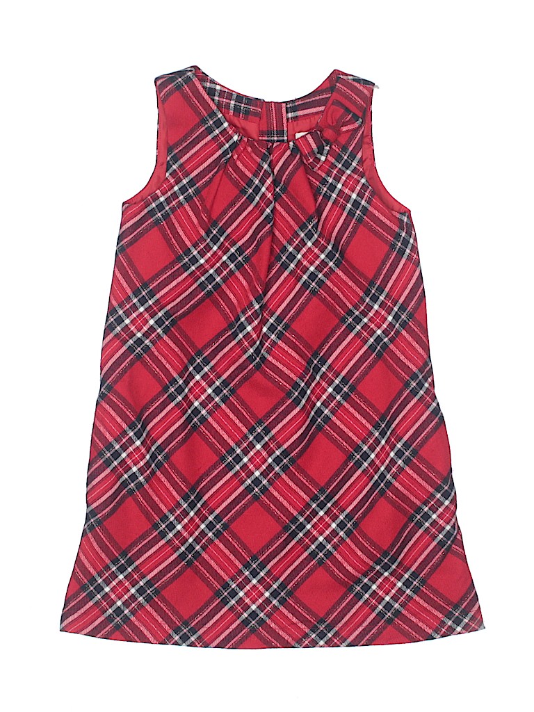 - Scoop neckline, a-line silhouette, plaid print, bow accents, red
