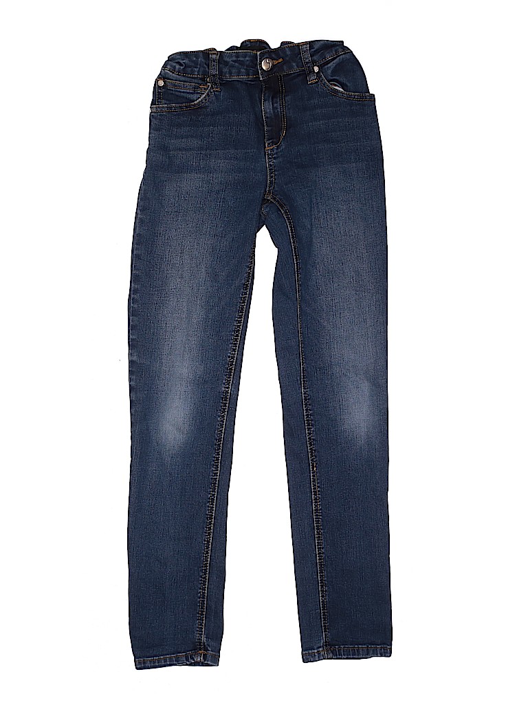 - Solid, blue, dark wash, adjustable waist