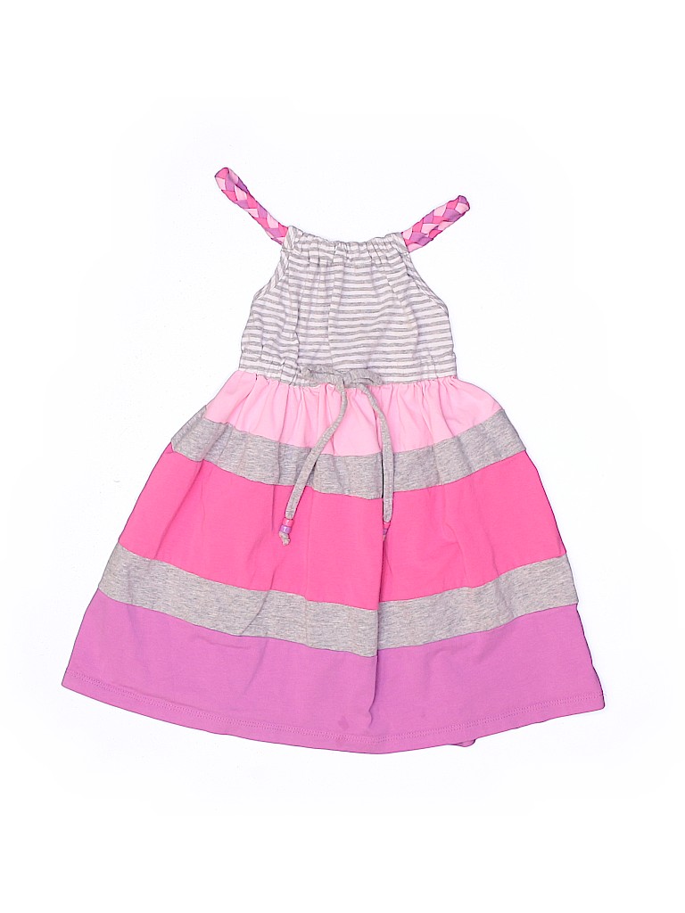 - Boat neckline, a-line silhouette, striped print, color blocked detail, pink