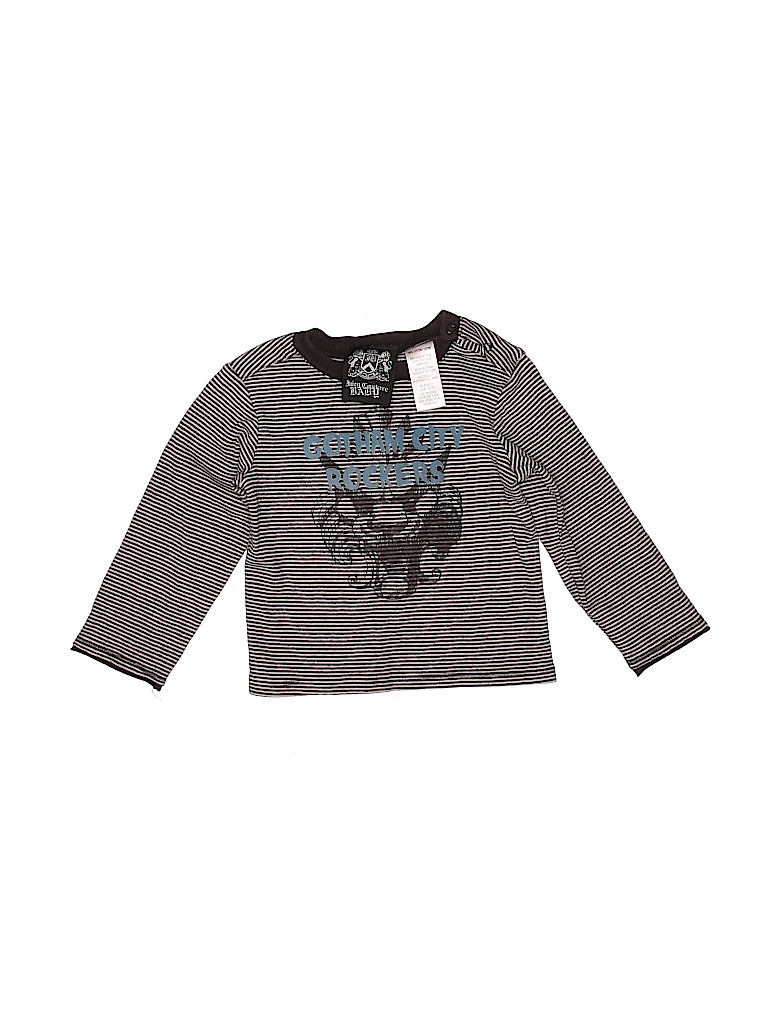 - Short sleeve, striped print, graphic print, gray