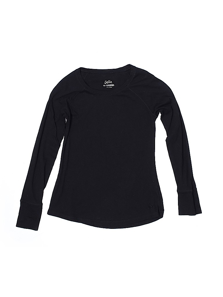- Long sleeves, scoop neckline, solid, black
