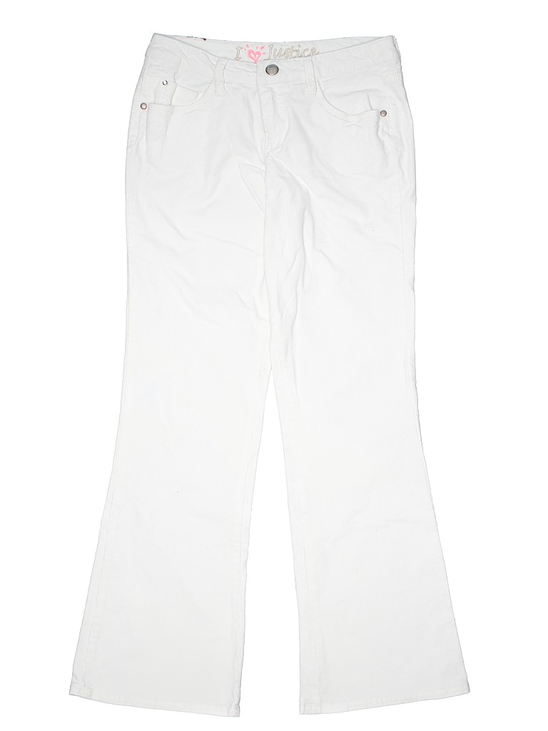 - Solid, white, straight leg cut