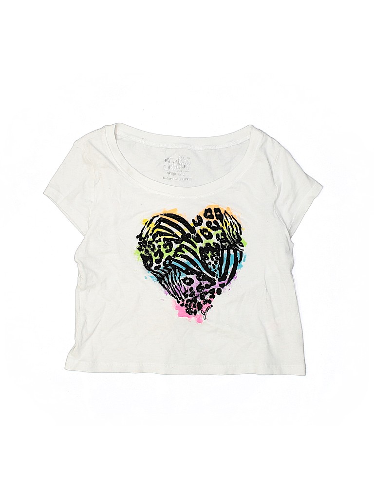 - Short sleeve, crew neckline, heart print, white