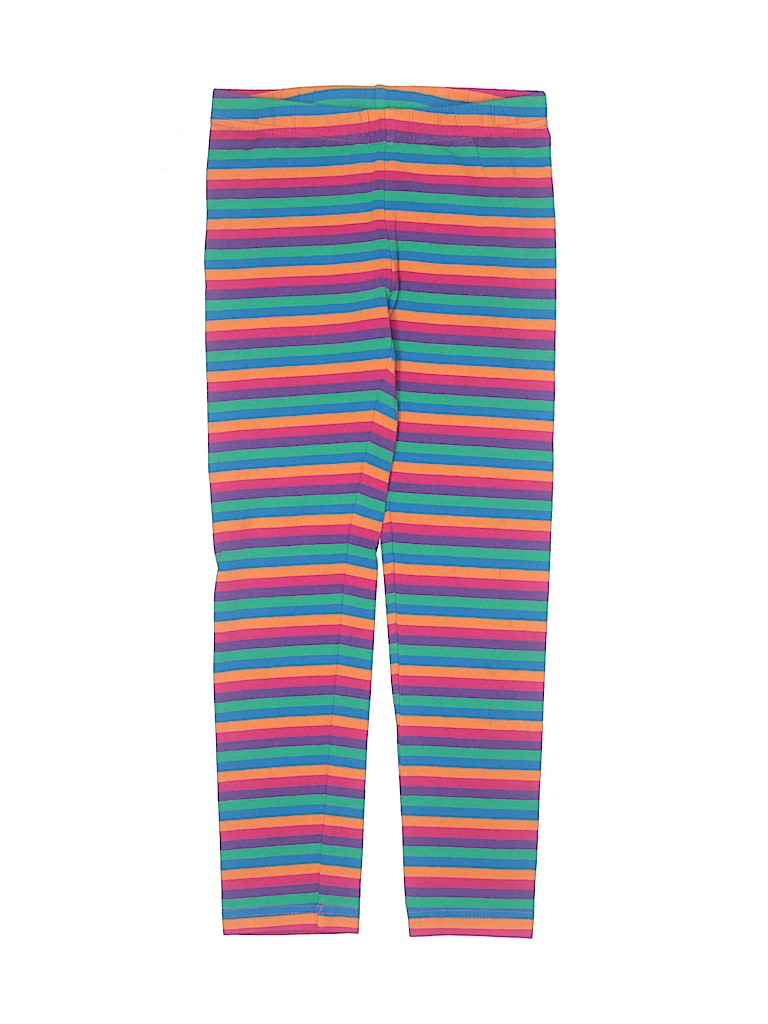 - Striped print, purple, skinny leg cut, elastic waist