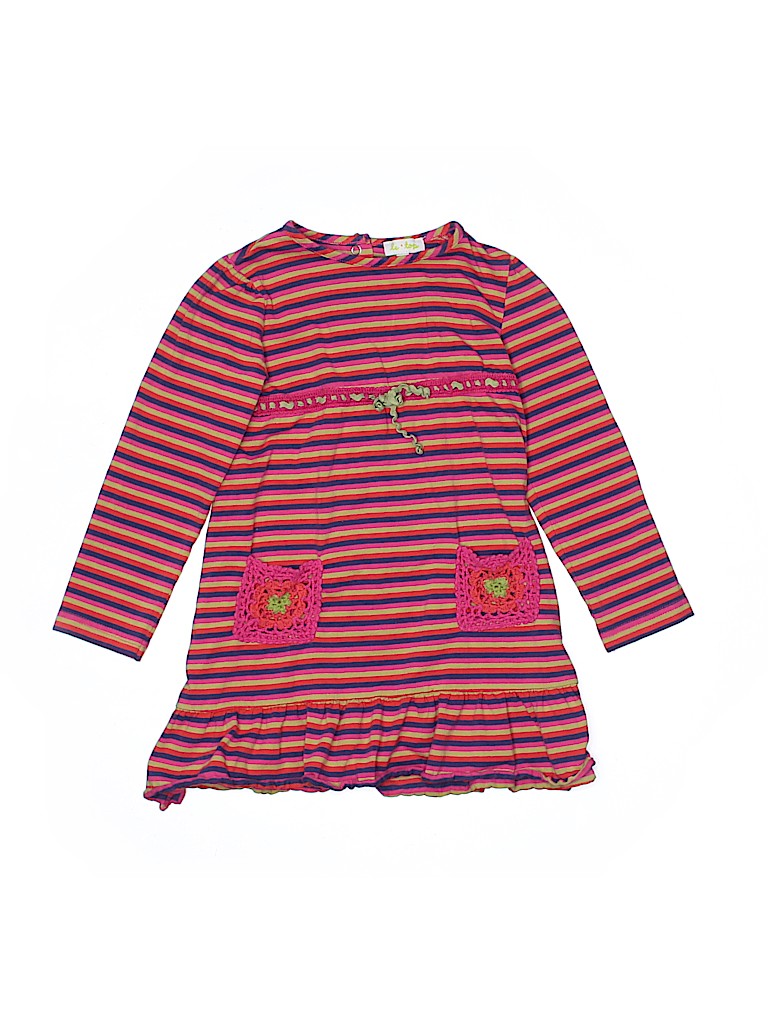 - Crew neckline, a-line silhouette, striped print, pink
