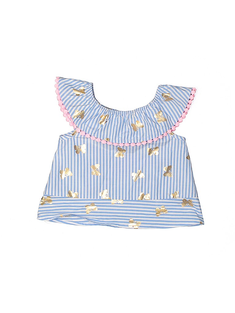 - Short sleeve, striped print, blue
