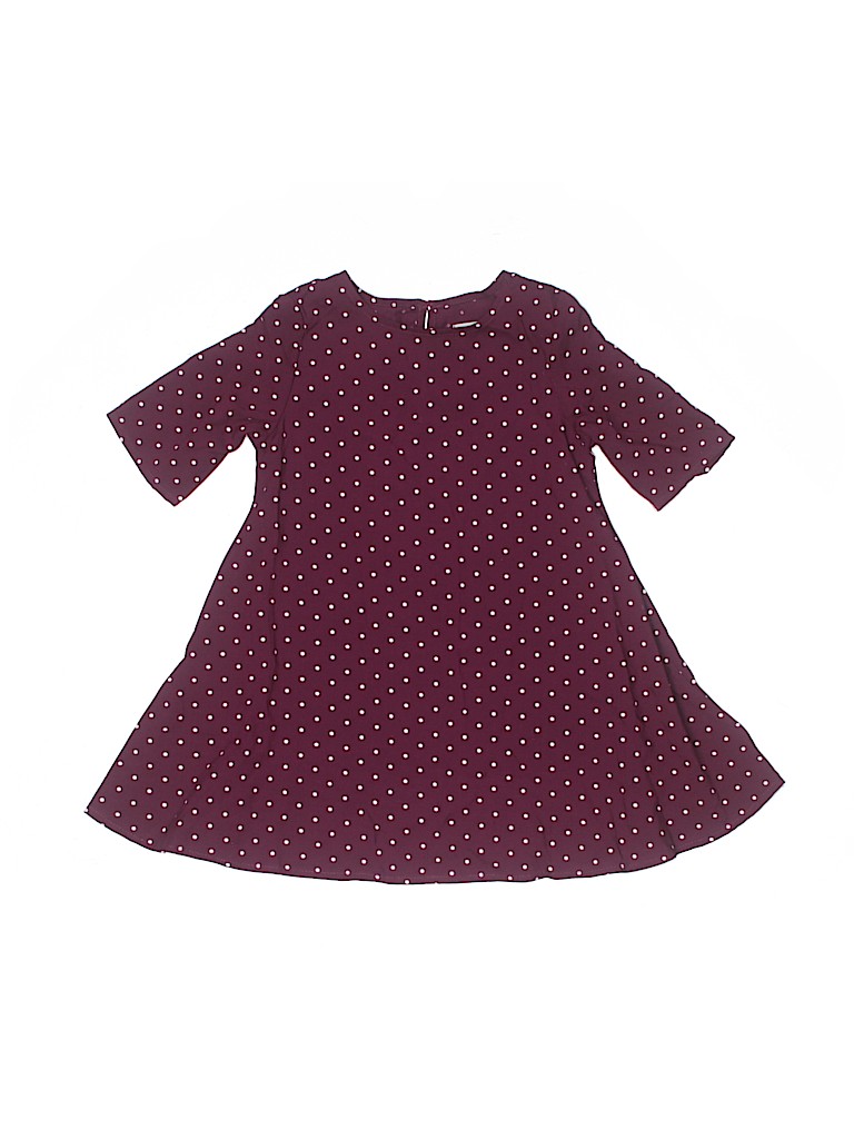 - Crew neckline, a-line silhouette, polka dot print, burgundy