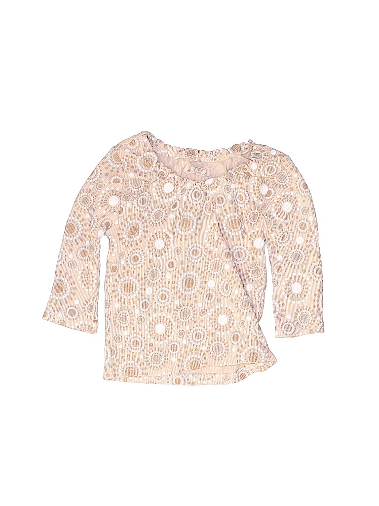 - Long sleeve, boat neckline, printed, tan