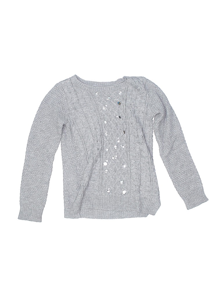 - Crew neckline, metallic detail, gray