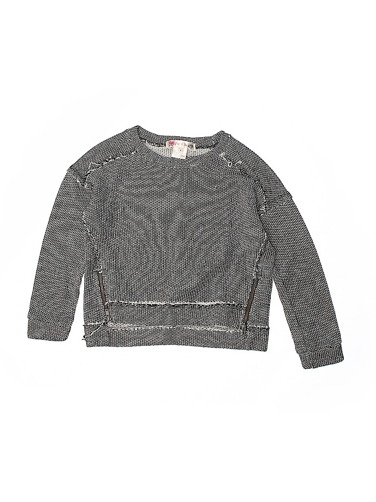 - Crew neckline, solid, zipper detail, frayed edges, gray