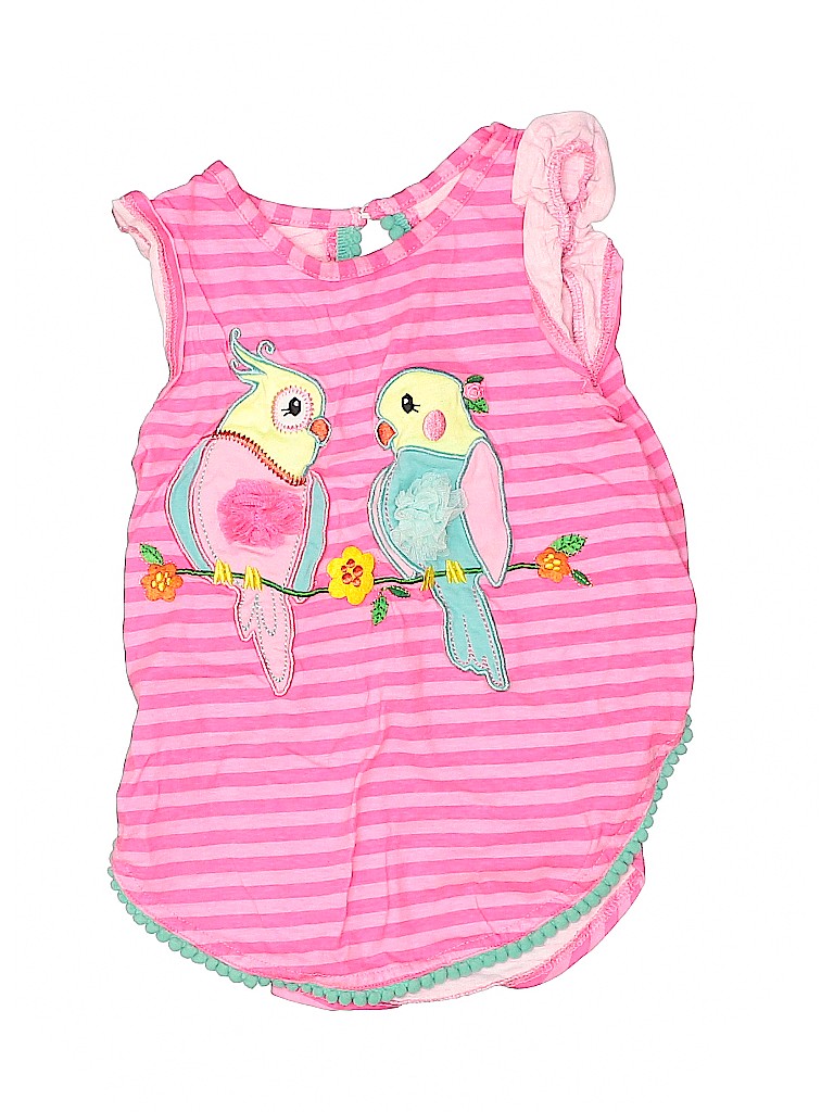 - Sleeveless, crew neckline, striped print, embroidered detail, pink