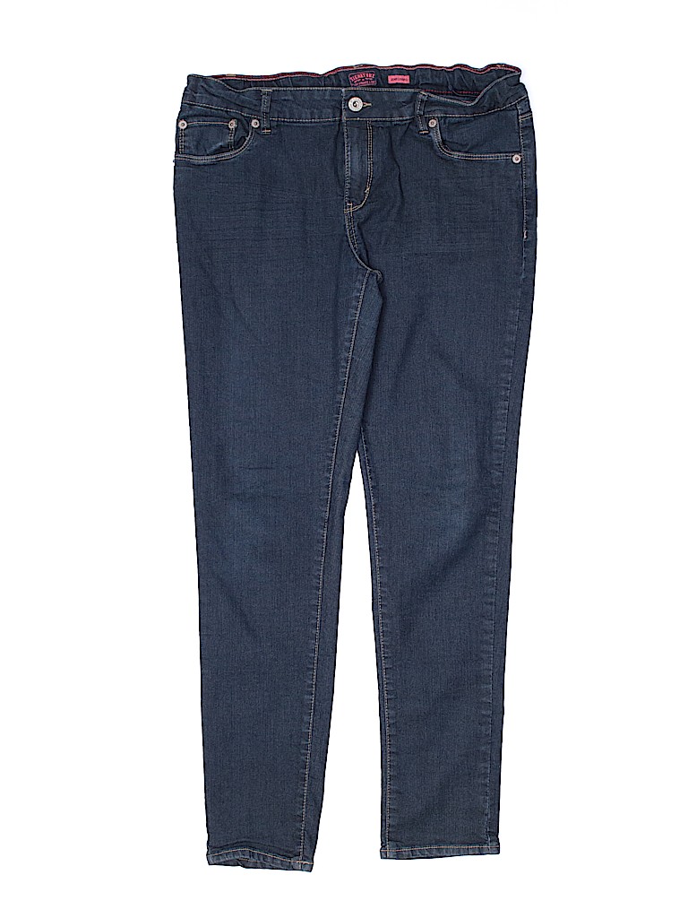 - Solid, blue, medium wash, skinny leg cut, adjustable waist
