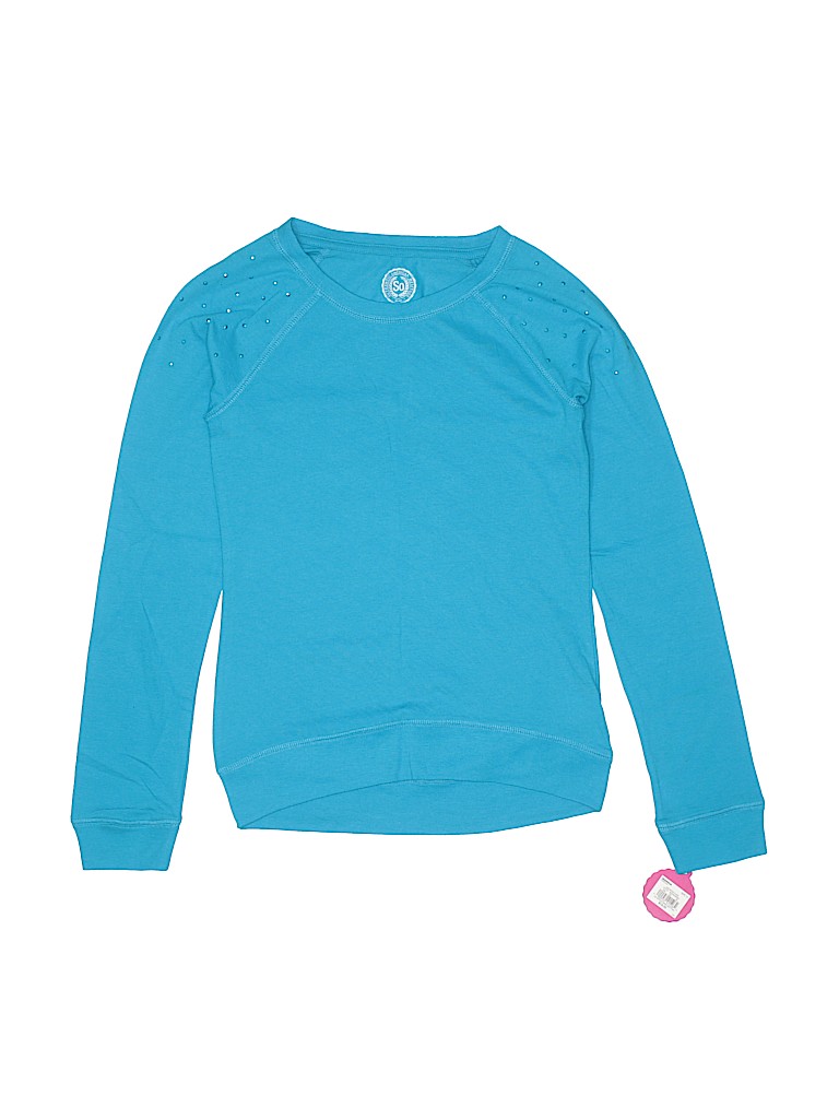 - Long sleeve, crew neckline, solid, blue