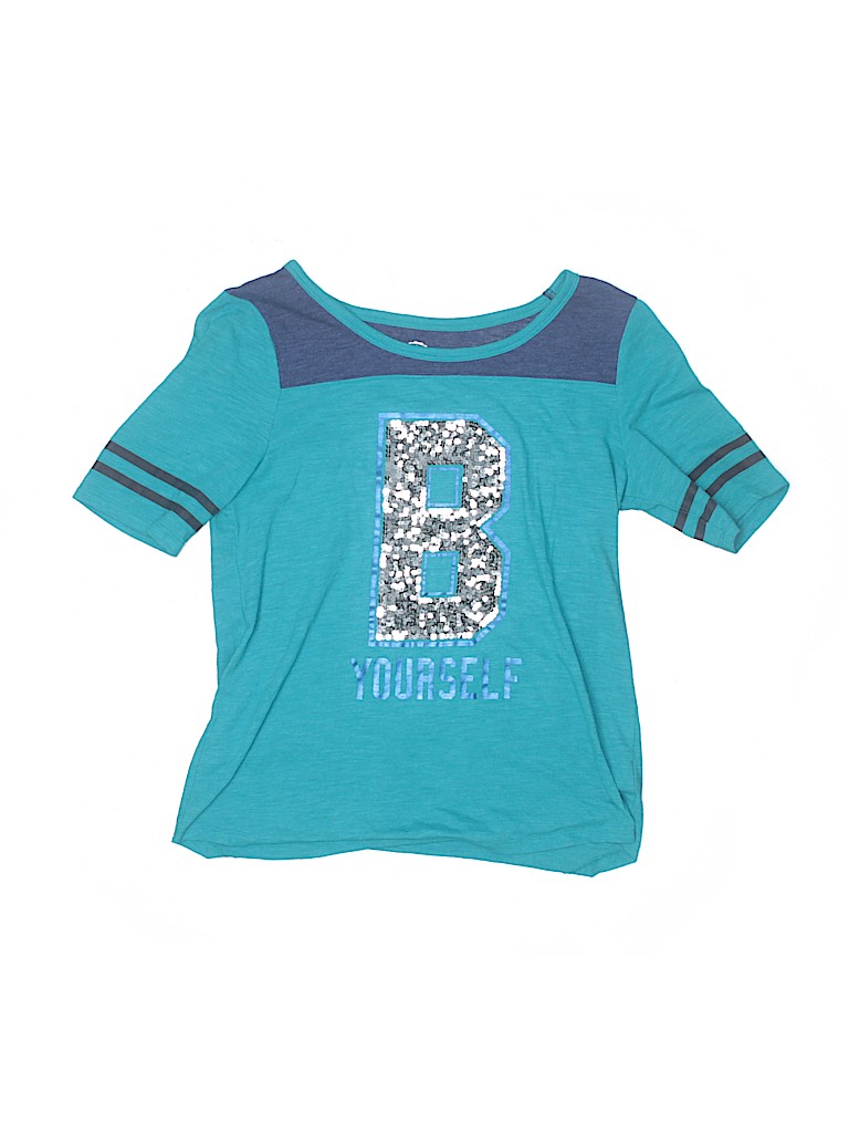 - Short sleeve, crew neckline, striped print, graphic print, embellished details, teal