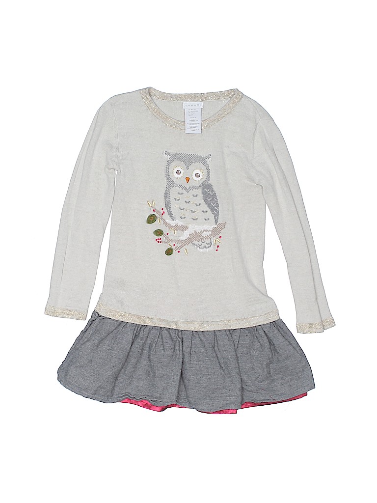 - Crew neckline, sweater dress, metallic detail, graphic print, gray