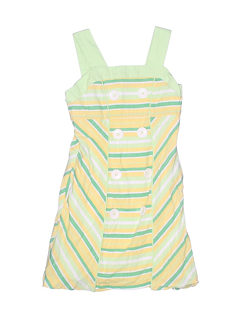 - Square, a-line silhouette, striped print, yellow
