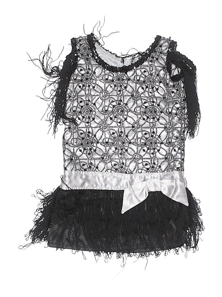 - Short sleeve, crew neckline, solid, bow accents, fringe accents, black