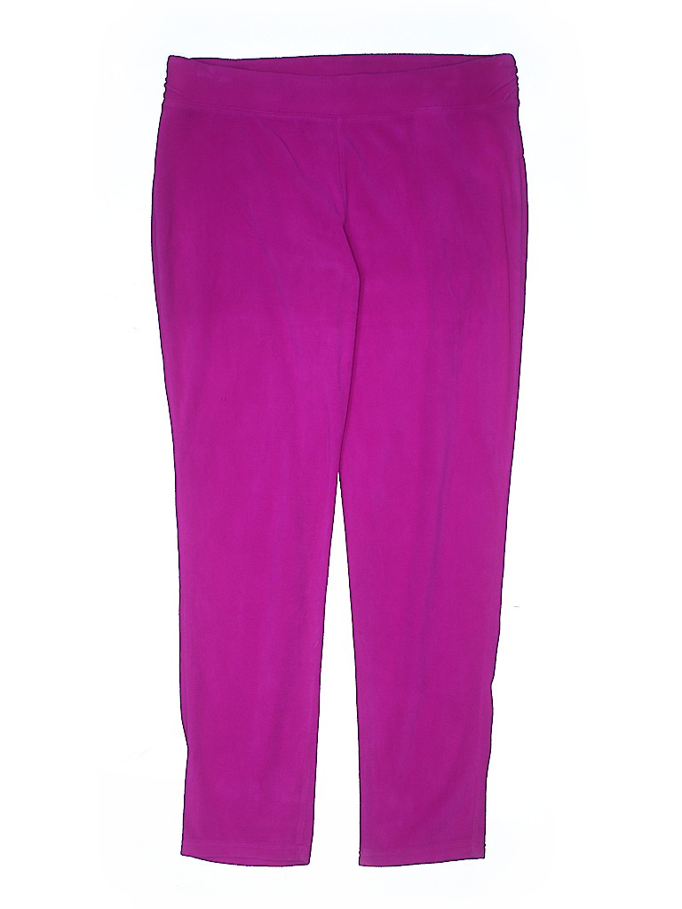 - Solid, purple, skinny leg cut, elastic waist