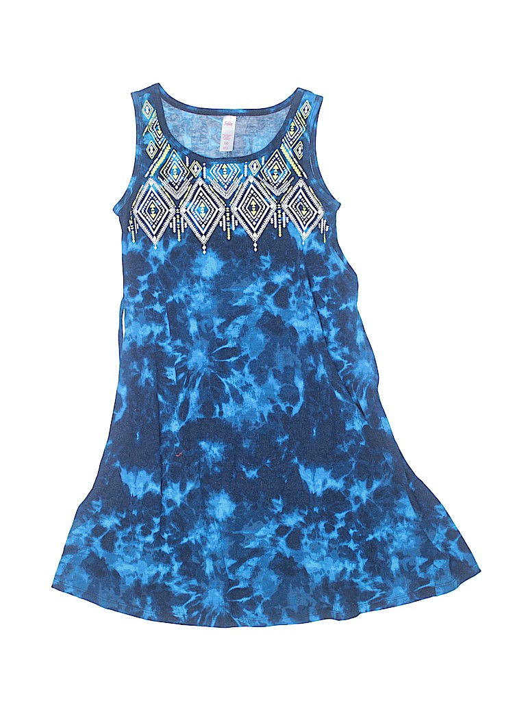 - Scoop neckline, a-line silhouette, tie-dye print, blue