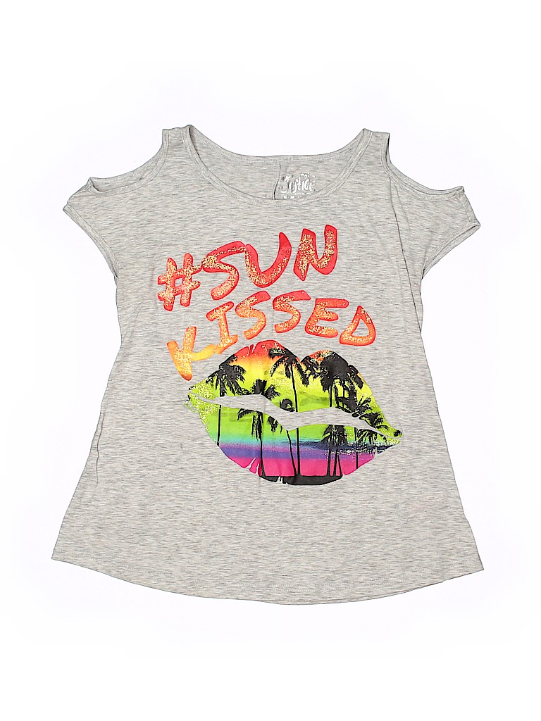 - Sleeveless, cold shoulder, graphic print, gray