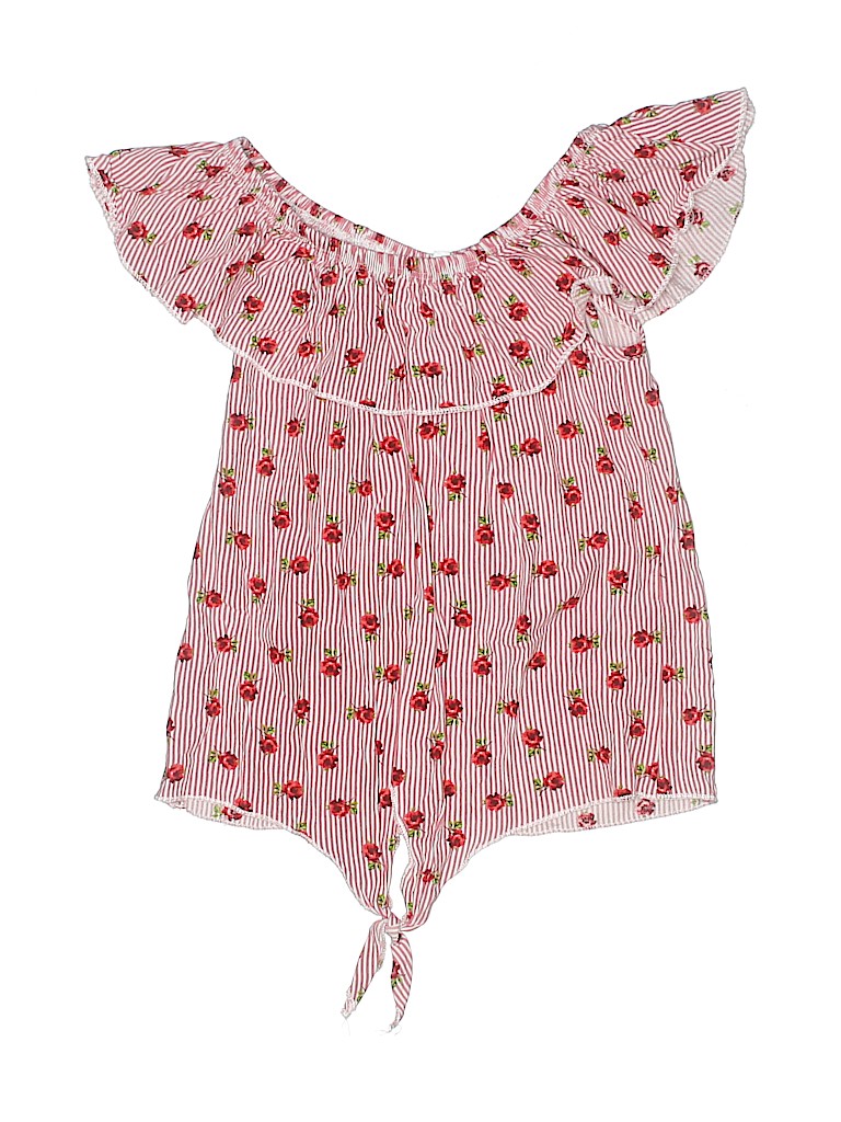 - Short sleeve, scoop neckline, floral print, red