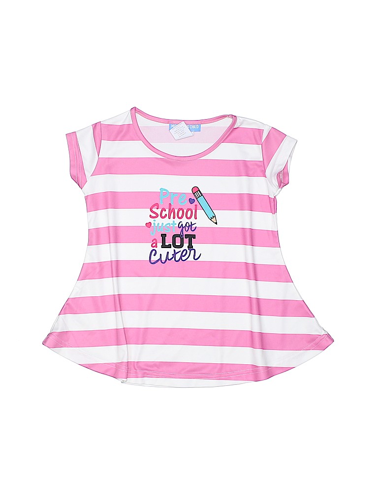 - Short sleeve, crew neckline, striped print, graphic print, pink
