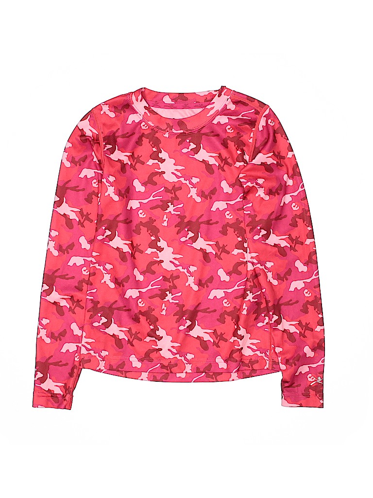 - Long sleeves, crew neckline, camo print, red