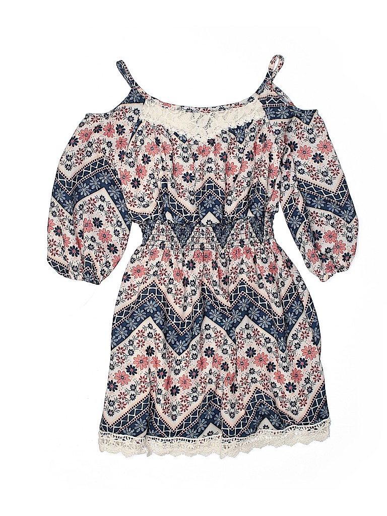 - Cold shoulder, a-line silhouette, floral print, lace detail, blue