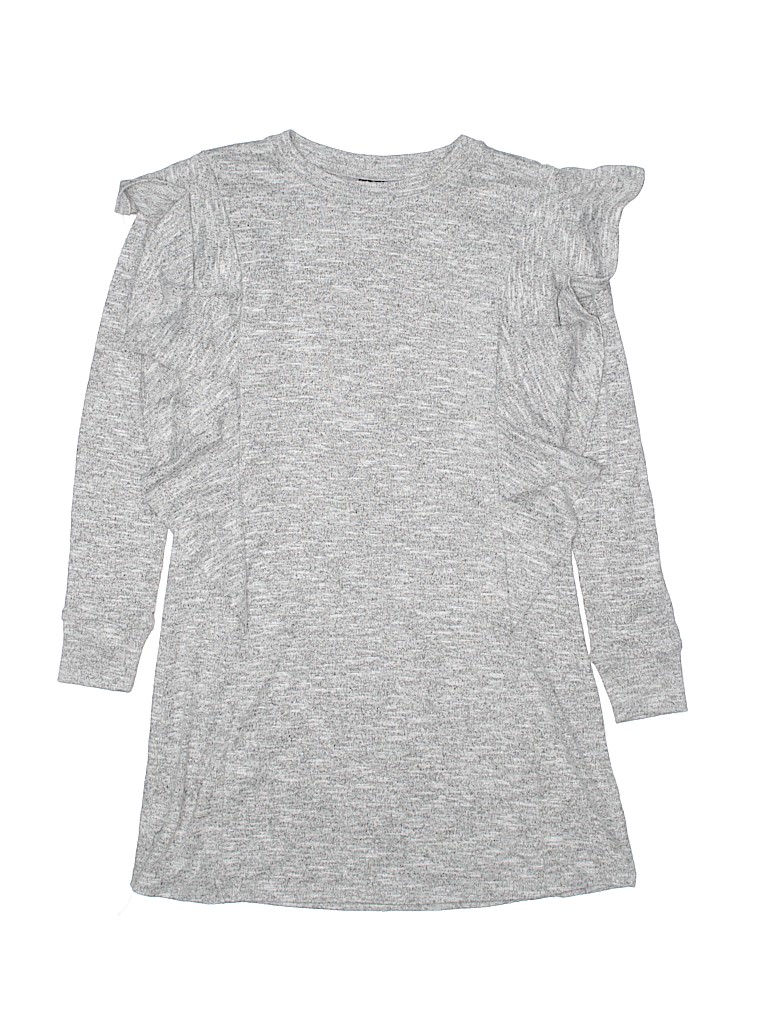 - Crew neckline, solid, ruffle accents, gray