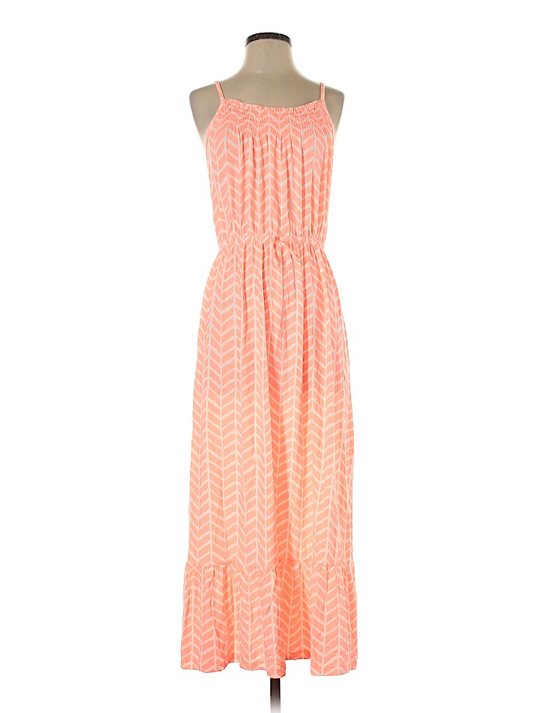 - Scoop neckline, maxi silhouette, chevron/herringbone pattern, pink