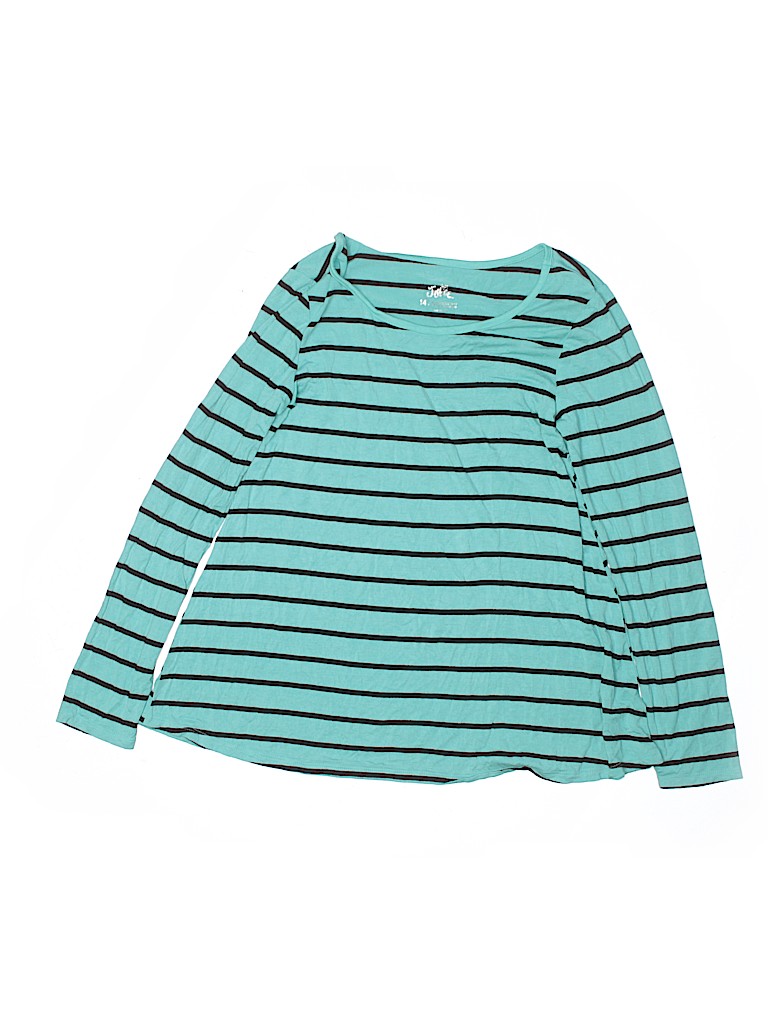 - Long sleeve, crew neckline, striped print, teal