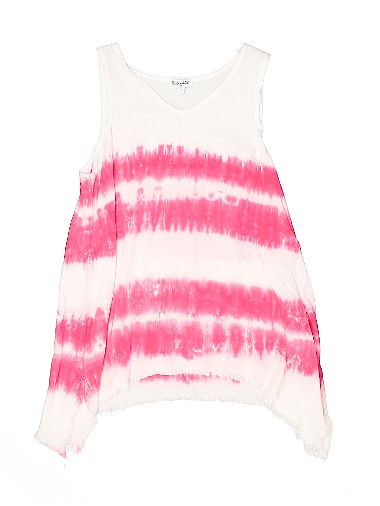 - Sleeveless, v-neckline, tie-dye print, pink