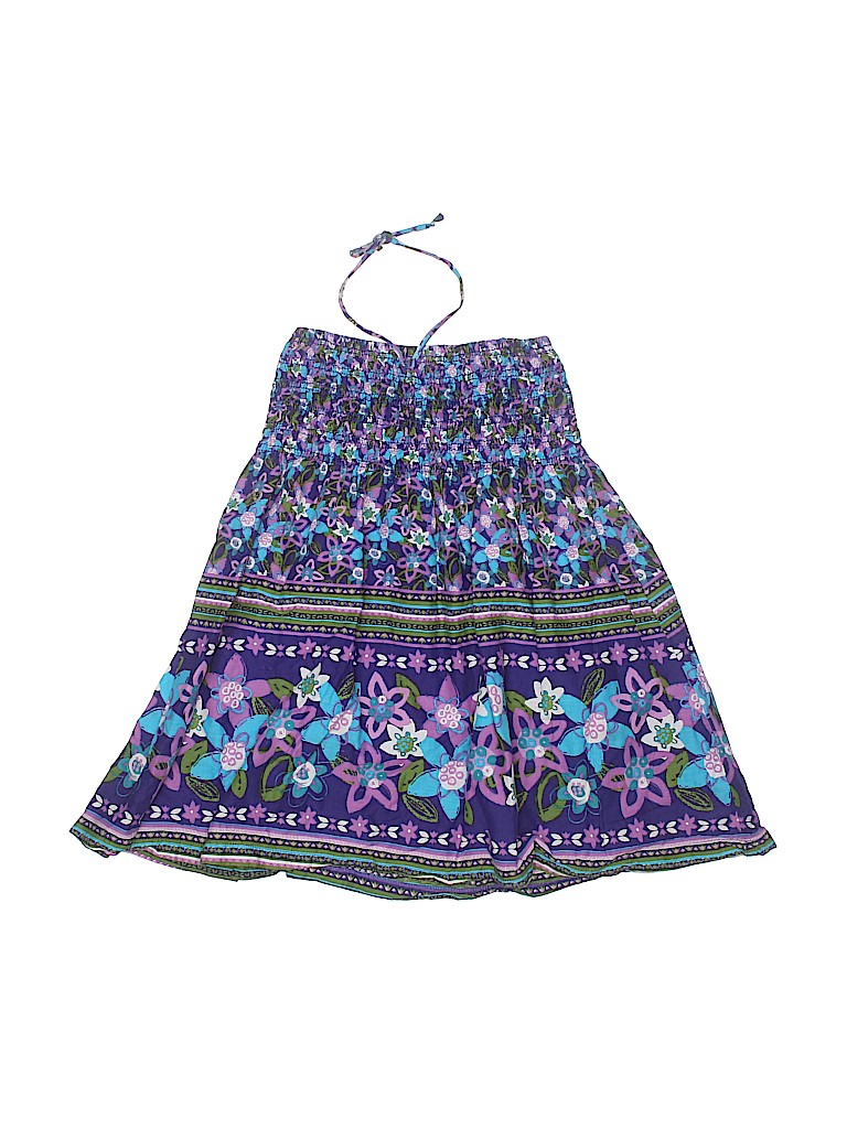 - Halter neckline, floral print, purple