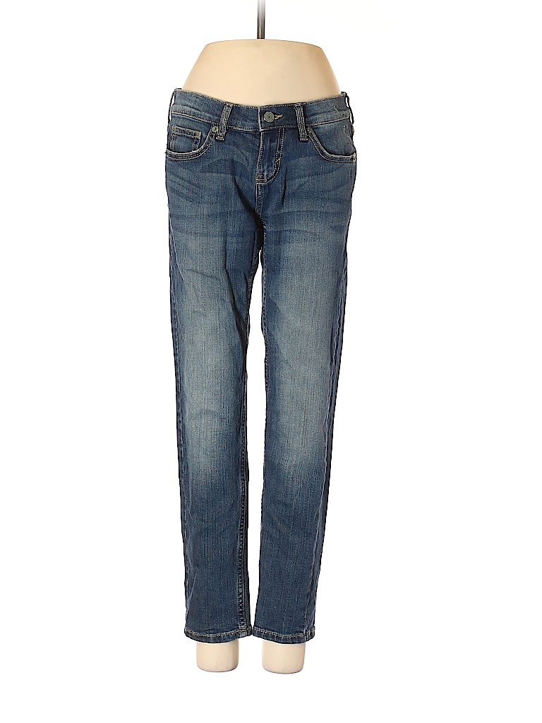 - Blue, low rise waist