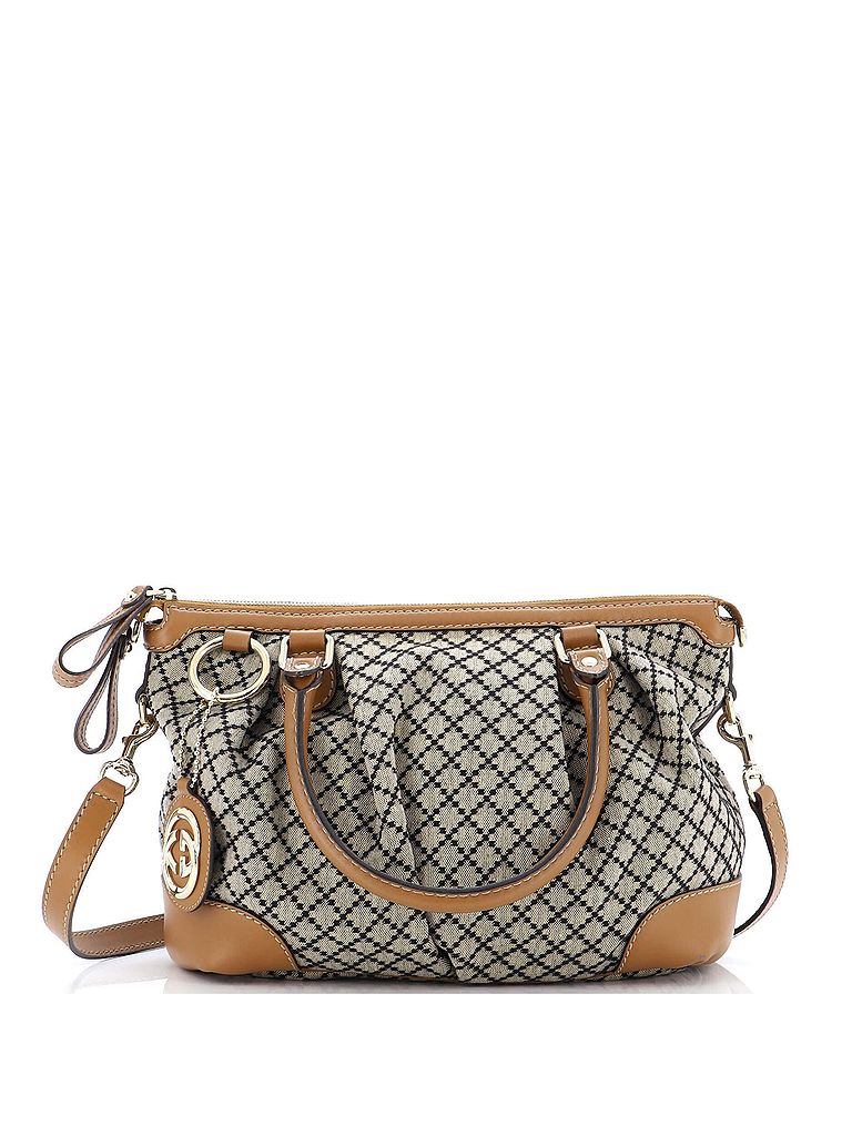 - Exterior Color: brown | Interior Color: neutral | Exterior Material: Canvas Plain | Interior Material: Fabric | Hardware Color: Gold Tone | Accessories: Charms, Dust Bag, Detachable StrapStrap Length: 19-20 | Item No: 236331/71 | CLAIRE CODE: HB.GC.SUTPS.DICA.ME