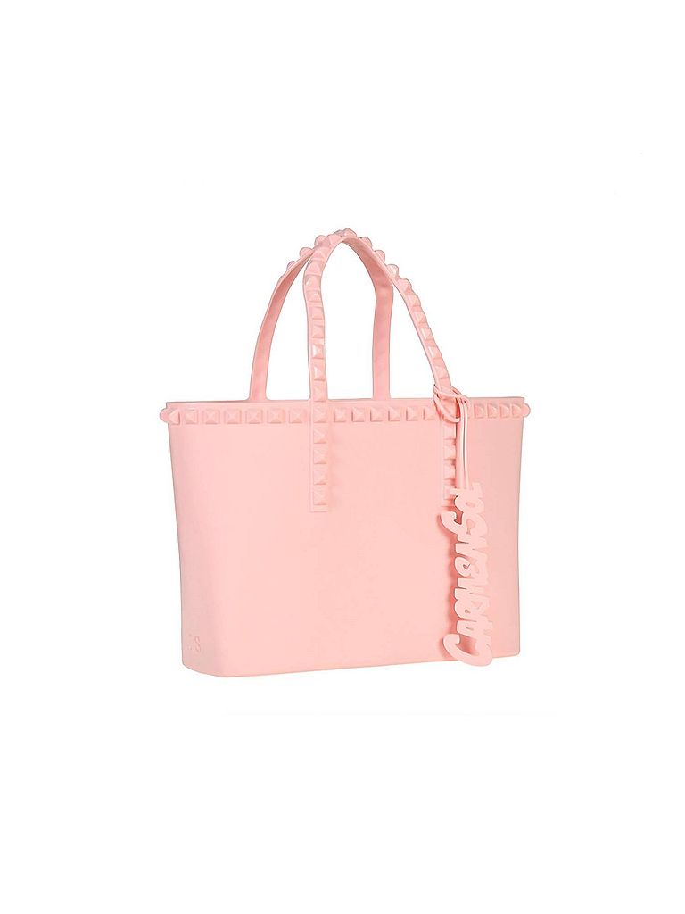 - Aside from being the cutest bag ever, this tote is the perfect size to hold all of your vacation necessities. Pair this adorable bag with a flowing dress and some slides and you're all set! Description: Made in Italy. Made of high-quality Italian Jelly (PVC). Features studded straps. Waterproof and water resistant. Sustainable (100% recyclable & prop65 compliant). Vegan. This Carmen Sol jelly studded handbag can be personalized with a charm of your choice and color. The charms that we have available are: Favorite Cities, Words (Love, Peace, Happy, Believe, Hope, Understanding) and other fun charms Features. Choose your perfect rubber pool bag in our site. Details: Measures: L: 12â€, H: 8â€, W: 3.5â€, Drop: 5†/ Weight: 0.5 kg / 1.2 pounds. Includes: Eco-friendly dust bag and Carmen Sol tone on tone charm. Nontoxic PVC (Prop 65 compliant)
